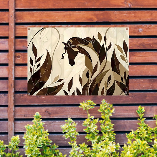 Minimalistisch paardenontwerp met Art Nouveau stijl tuinposter