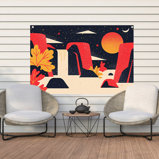 Kleurrijke abstracte waterval met rotsen tuinposter