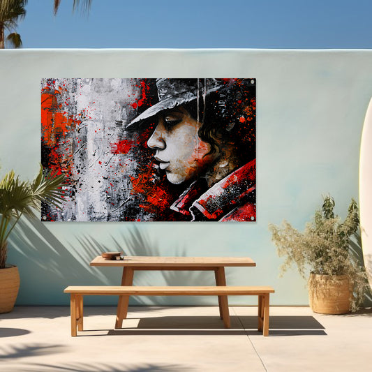Kleurrijk abstract schilderij van een papegaai tuinposter