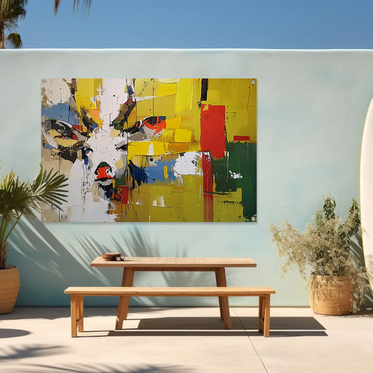 Levendig abstract schilderij met dynamische kleuren tuinposter