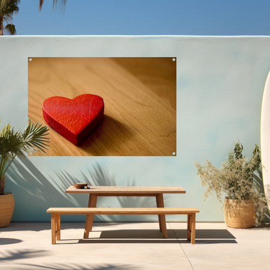 Eenvoudig Rood Hart op Houten Ondergrond tuinposter