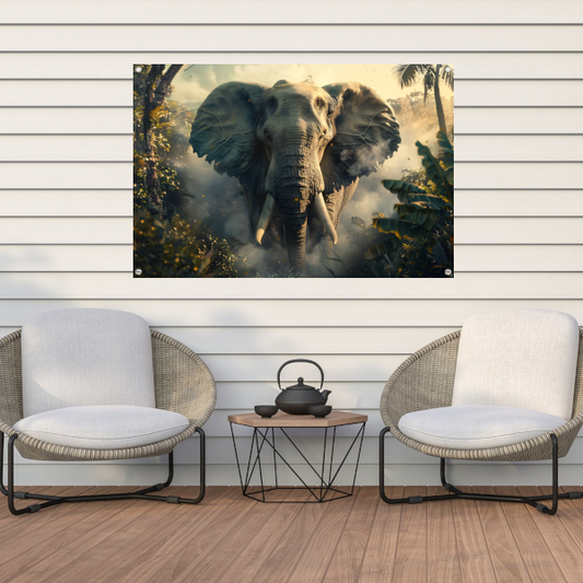 Zwart-wit olifanten moeder en kalf kunst tuinposter