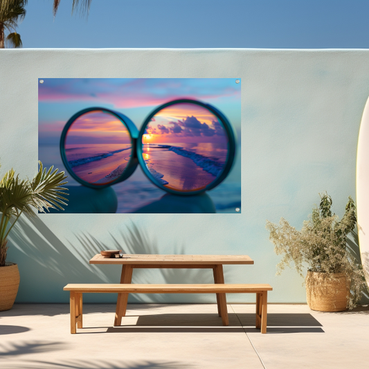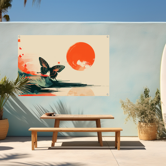 Rustende Vlinder in Oranje Zonsondergang tuinposter