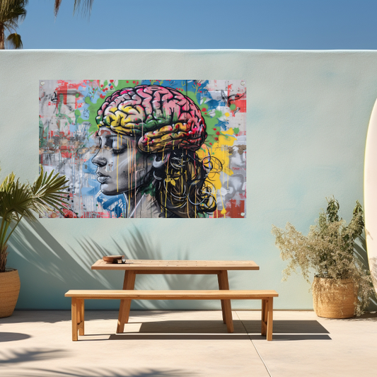 Kleurrijke verbeelding van de menselijke geest tuinposter