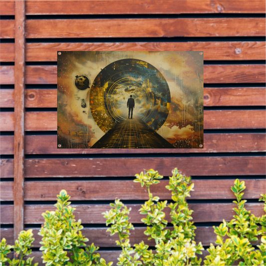 Wandelaar tussen tijd en kosmische poorten tuinposter