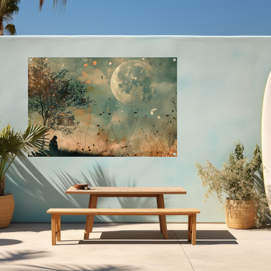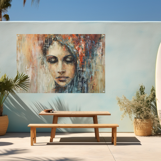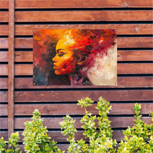 Expressieve abstracte vrouw in warme tinten tuinposter
