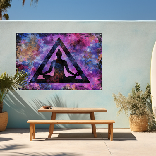 Abstracte meditatie met kleurrijke achtergrond tuinposter