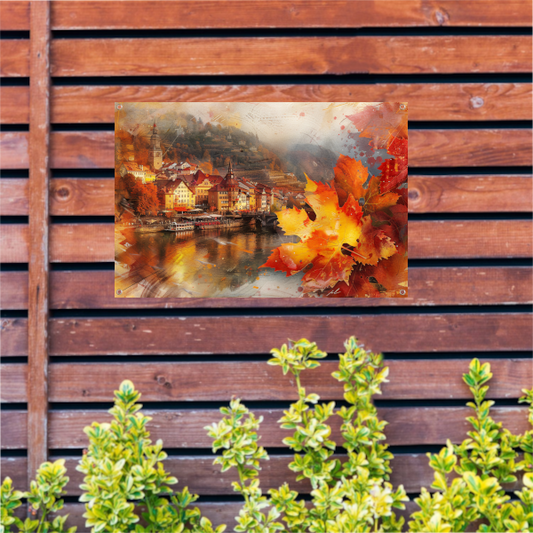 Schilderachtige Herfststad aan de Rivier tuinposter