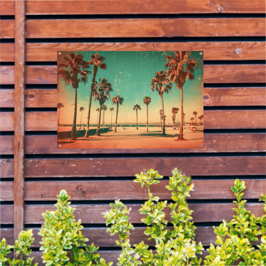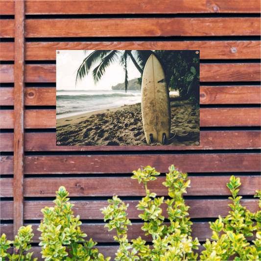 Sepia Surfplanken en Palmbladeren Collage tuinposter