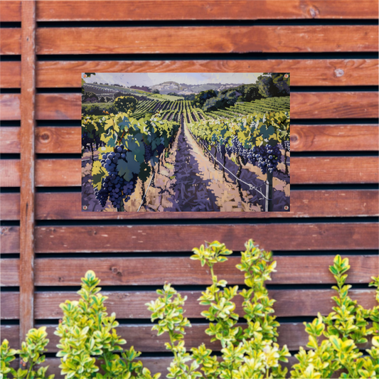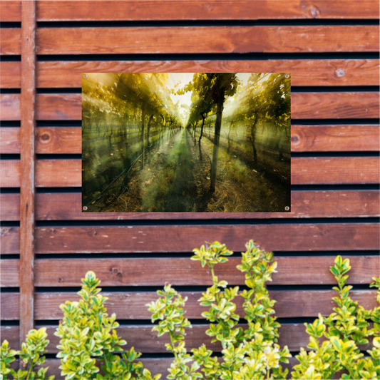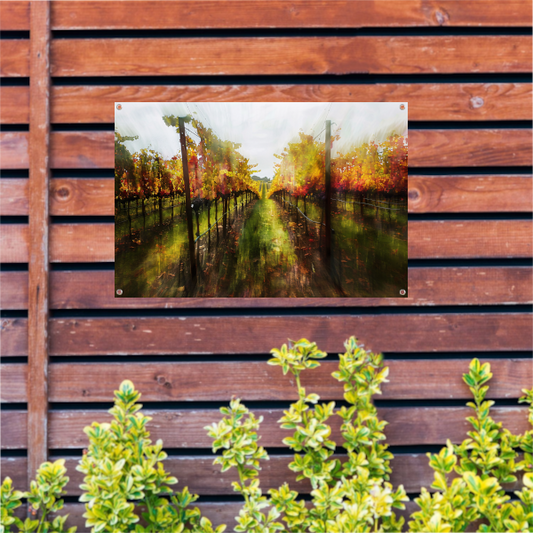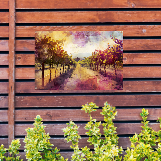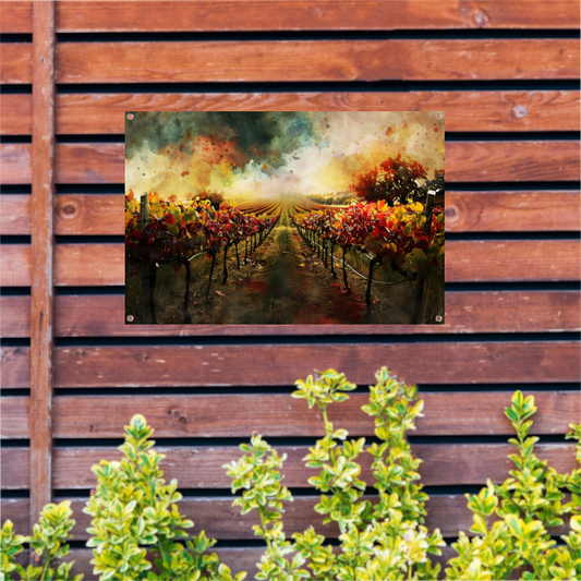 Herfstzonsondergang in levendige wijngaard tuinposter