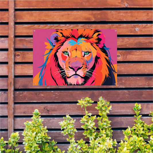 Kleurrijke popart leeuw illustratie voor interieur tuinposter