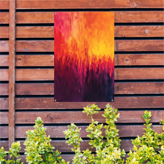 Abstracte kleurrijke vlammen in moderne kunst tuinposter