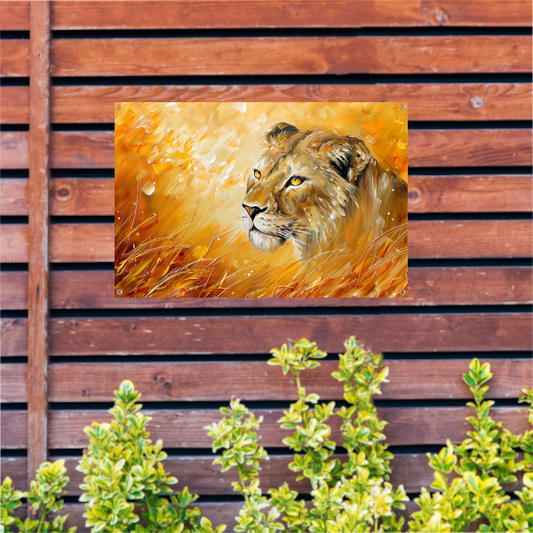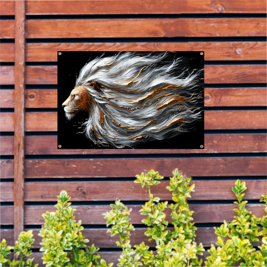 Majestueuze abstracte leeuw met dynamische manen tuinposter