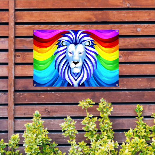 Kleurrijke abstracte leeuw met regenboog manen tuinposter