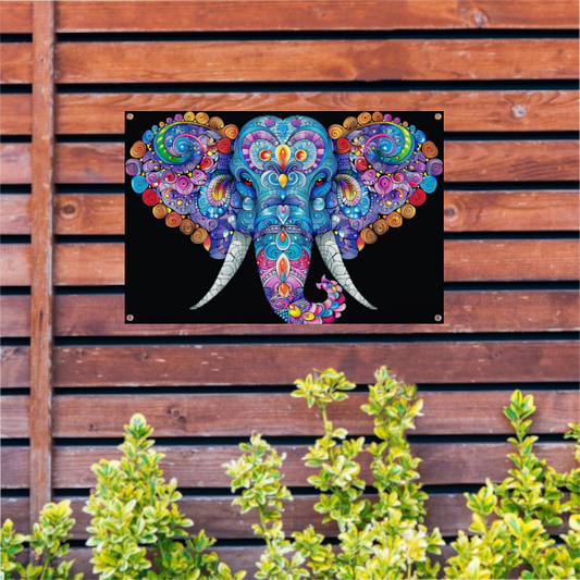 Kleurrijke olifant met gedetailleerde patronen tuinposter