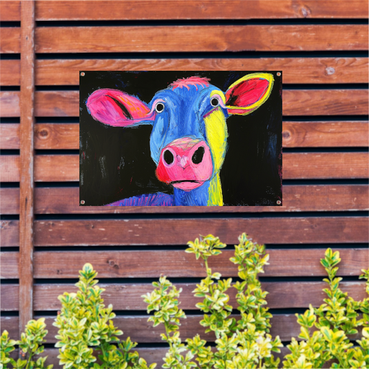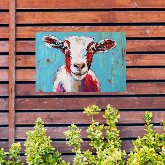Expressieve kleurrijke geitenkunst op levendige achtergrond tuinposter
