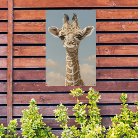 Schattig portret van een jonge giraffe tuinposter