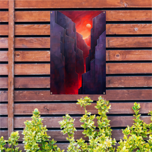 Futuristische canyon bij zonsondergang tuinposter