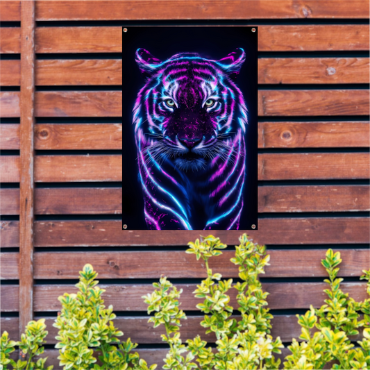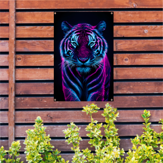 Neon tijger in digitale kunststijl tuinposter