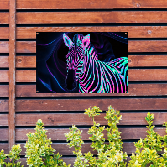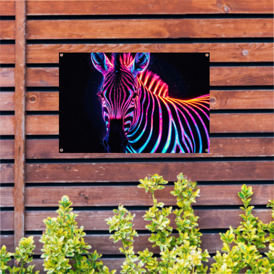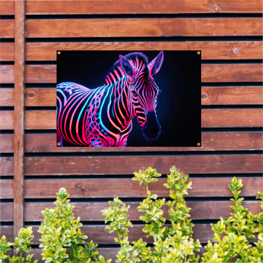 Futuristische neon zebra kunstafbeelding tuinposter