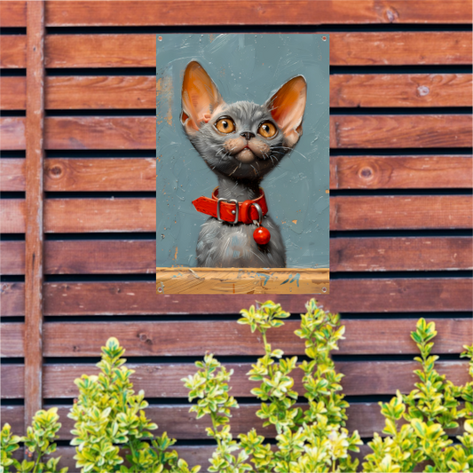 Schattige grijze kat met rode halsband tuinposter