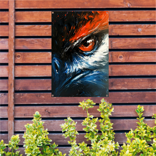 Abstract schilderij van vogel met intens oog tuinposter