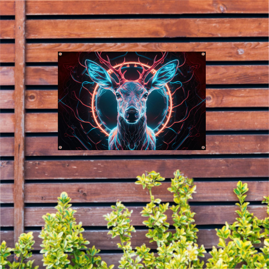 Futuristisch hert in levendige neonkleuren tuinposter