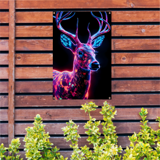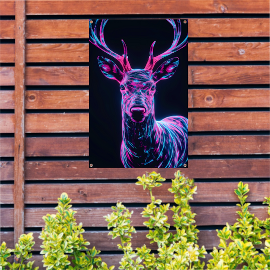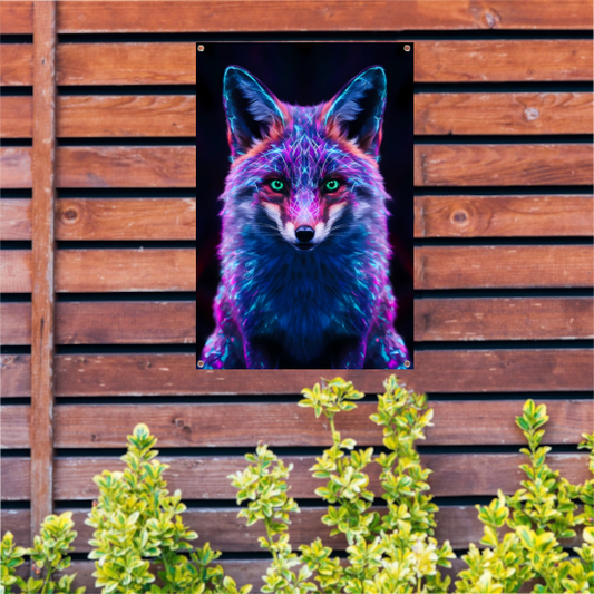Neon vos kunstwerk met levendige kleuren tuinposter