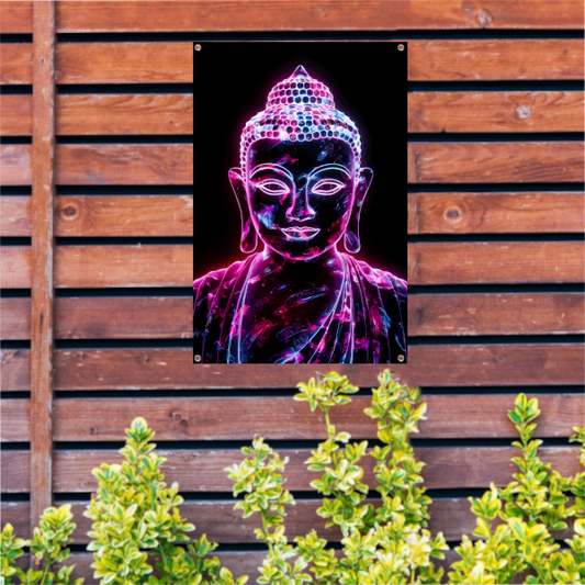 Kleurrijk neon Boeddha kunstwerk tuinposter