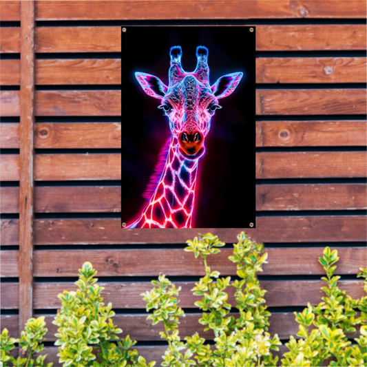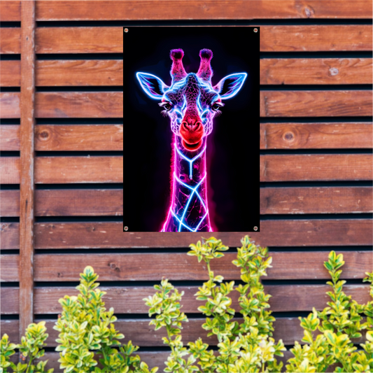 Futuristische giraffe in neonkleuren kunstwerk tuinposter