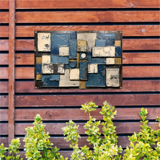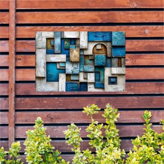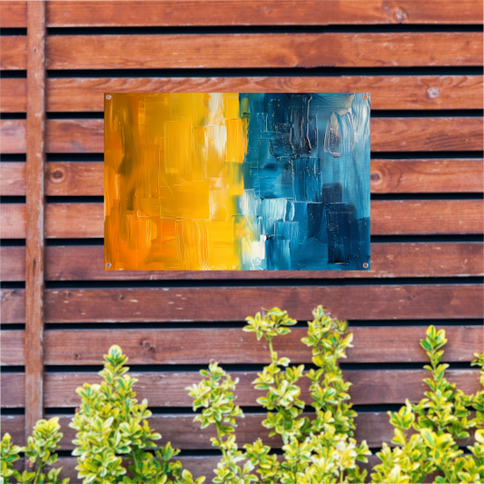 Moderne abstracte compositie in blauw en bruin tuinposter
