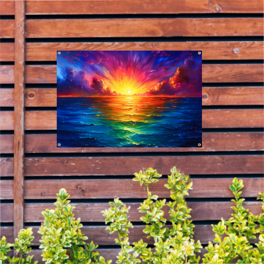 Kleurrijke zonsondergang boven kalme zee tuinposter
