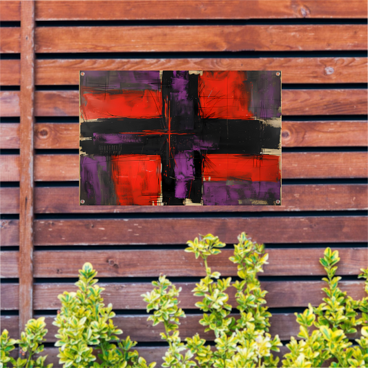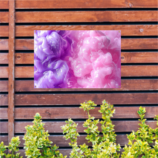 Abstracte schilderij met paarse en roze tinten tuinposter