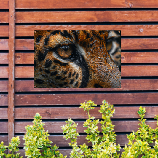 Gedetailleerde close-up van tijgeroog en vacht tuinposter