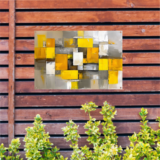 Abstract schilderij met rechthoeken en cirkels tuinposter