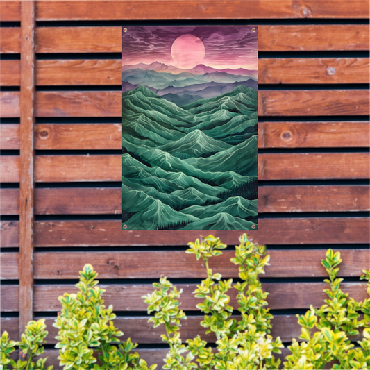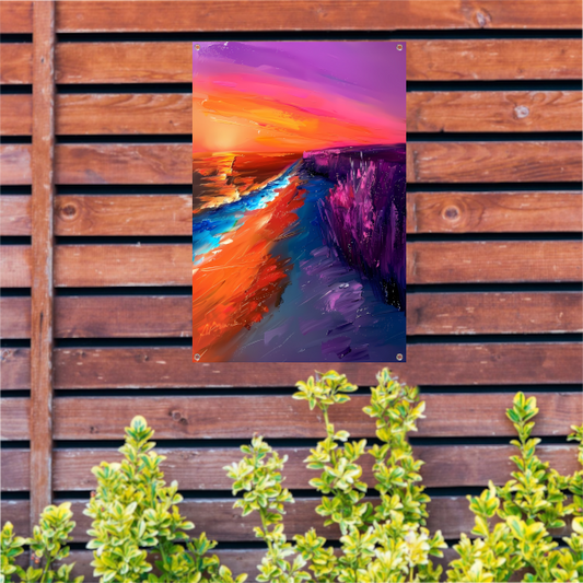 Kleurrijke abstracte zonsondergang bij zee tuinposter