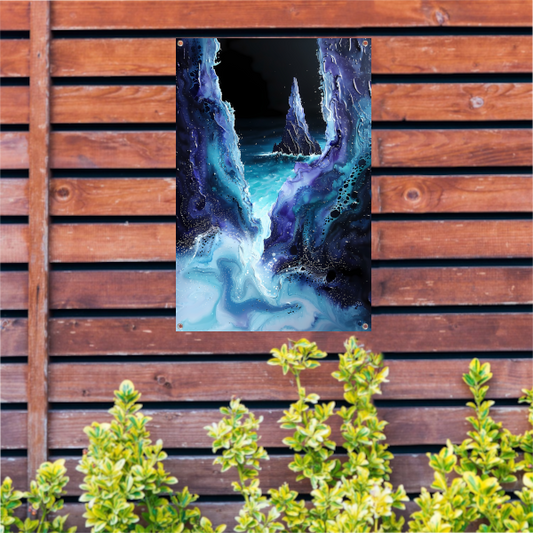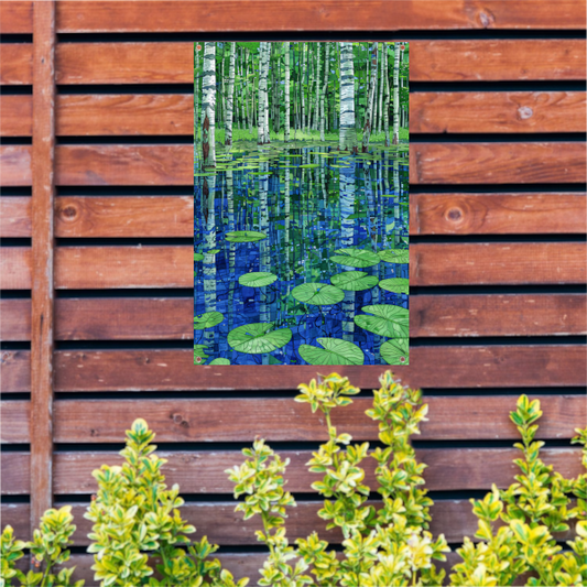 Abstracte blauwe lotusbloem met waterreflectie tuinposter