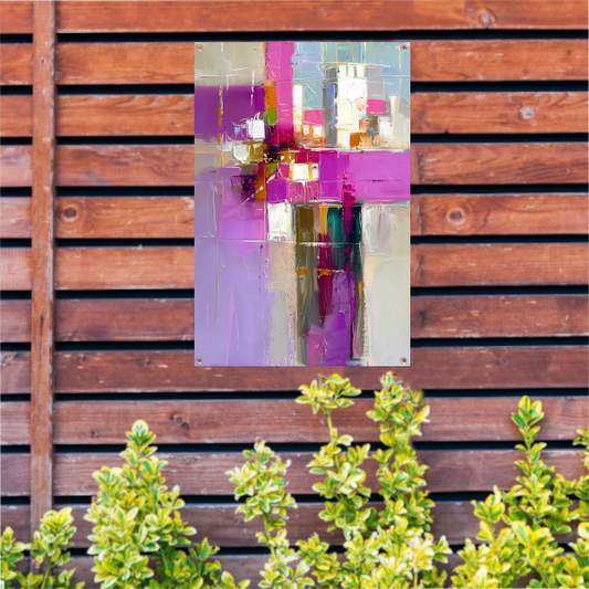 Grote Abstracte Bloemen in Zwart en Paars tuinposter