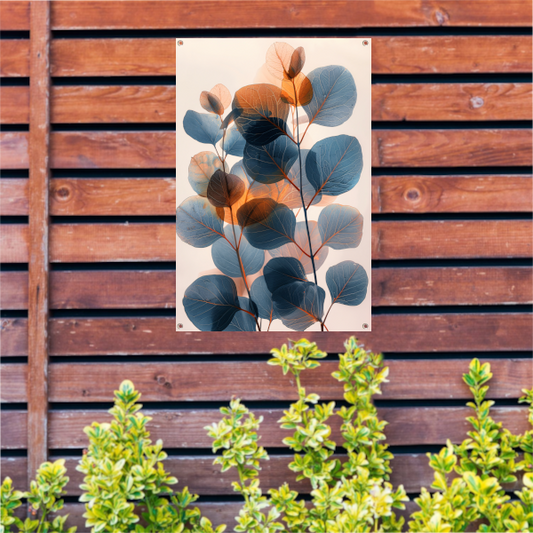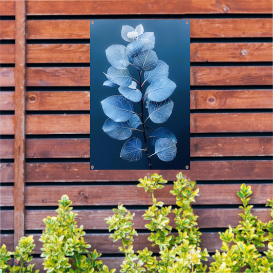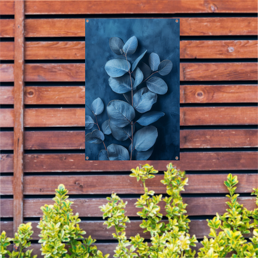 Blauwe eucalyptusbladeren in minimalistisch realisme tuinposter