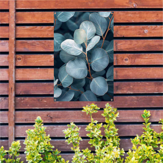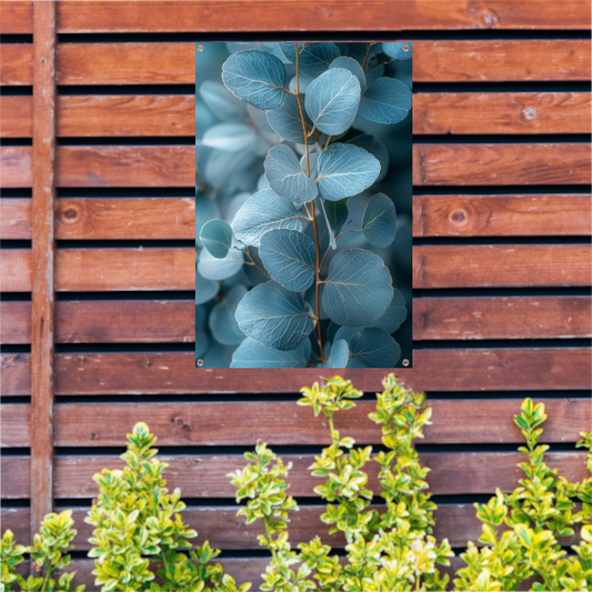 Elegante eucalyptusbladeren in zilveren en blauwe tinten tuinposter