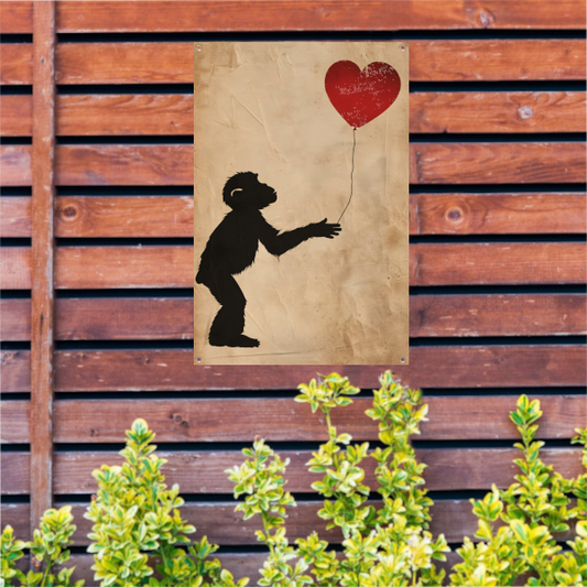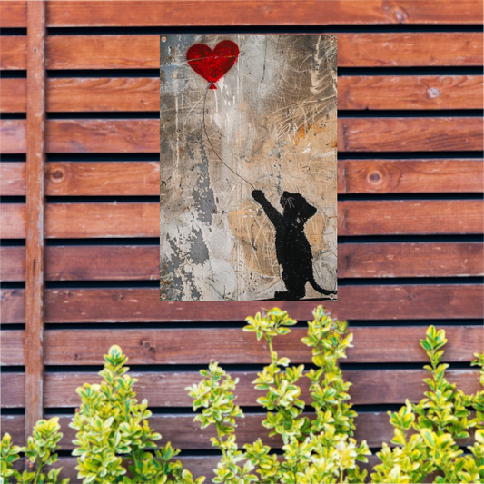 Silhouet van kat met rood hartvormige ballon tuinposter