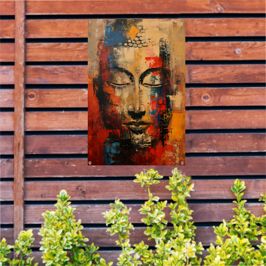 Dynamisch Abstract Portret van Boeddha in Kleur tuinposter