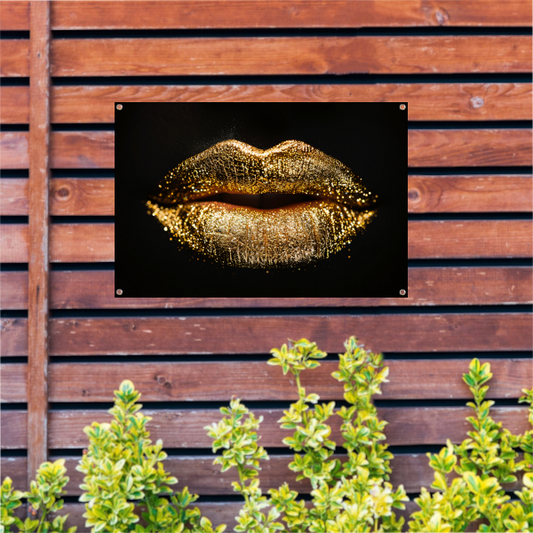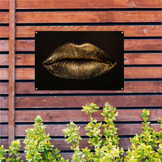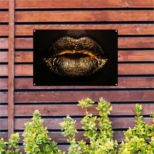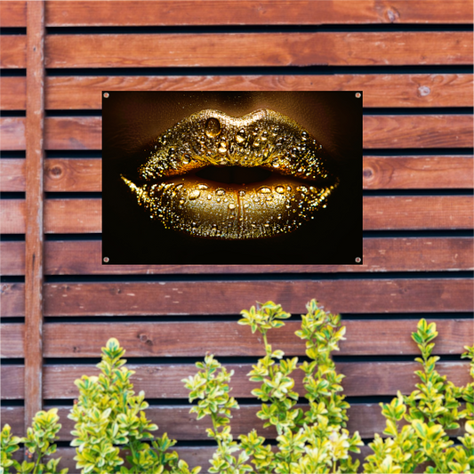 Gouden Glitters en Druppels op Donkere Lippen tuinposter