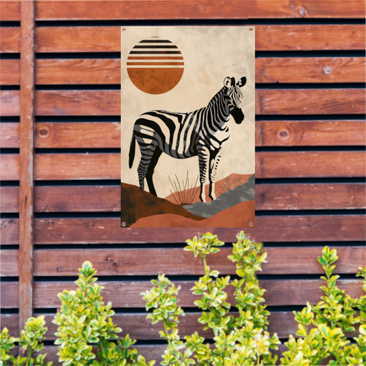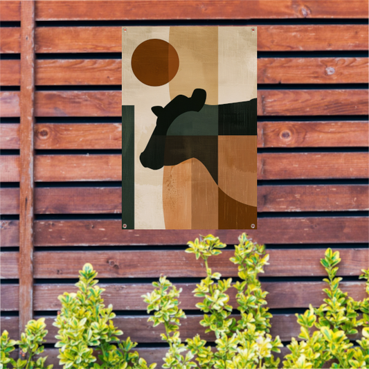 Gestileerde abstracte afbeelding van paard en zon tuinposter