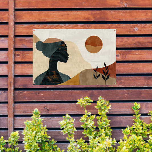 Abstract silhouet van een vrouw met natuurlijke kleuren tuinposter