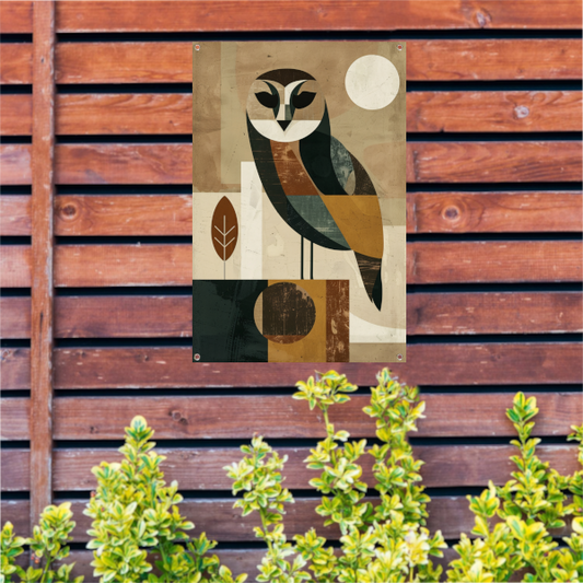 Stijlvolle Art Deco Uil met Maan op Achtergrond tuinposter
