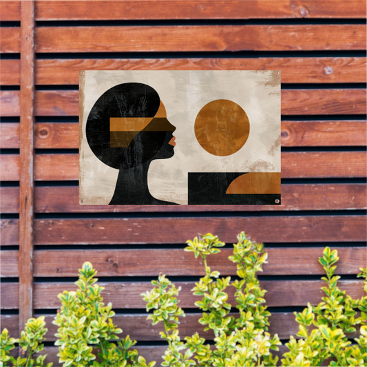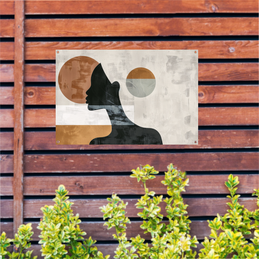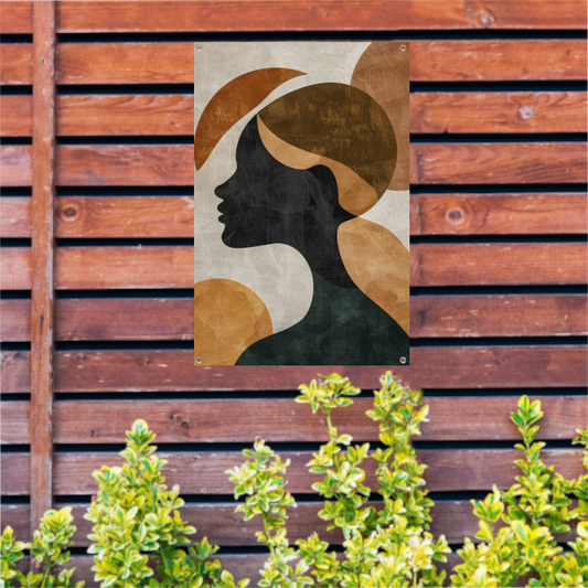 Abstracte silhouet in gouden en aardetinten tuinposter