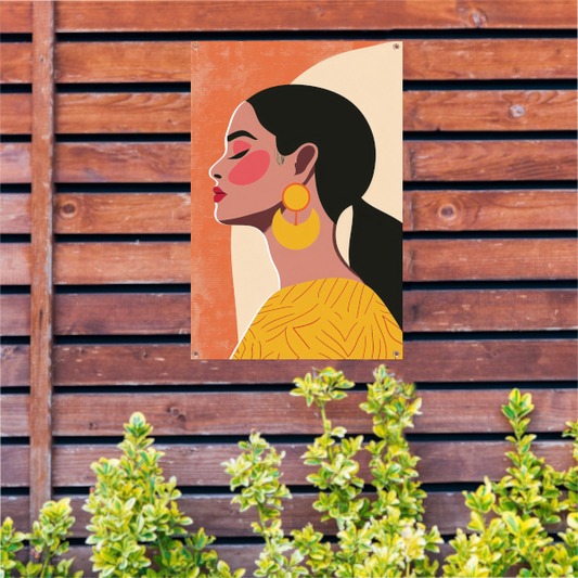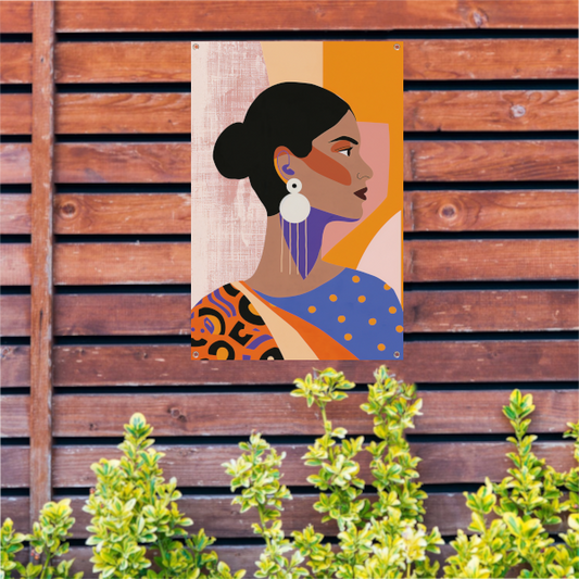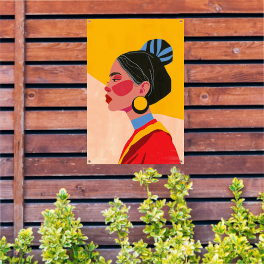 Stijlvol portret van een vrouw met culturele kleding tuinposter
