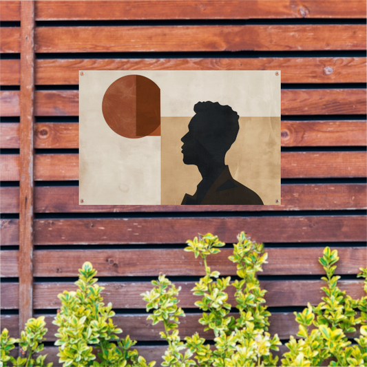 Abstract menselijk silhouet met geometrische achtergrond tuinposter