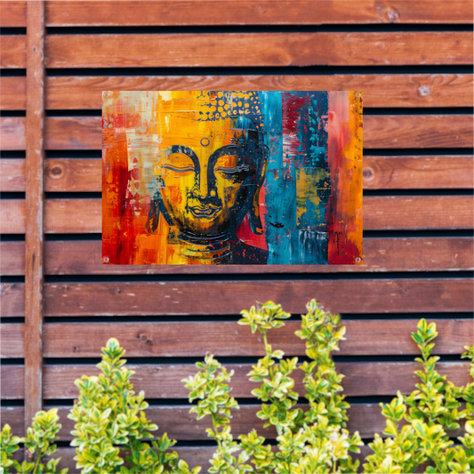 Abstracte Boeddha in Kleur met Dynamische Verf Stijlen tuinposter